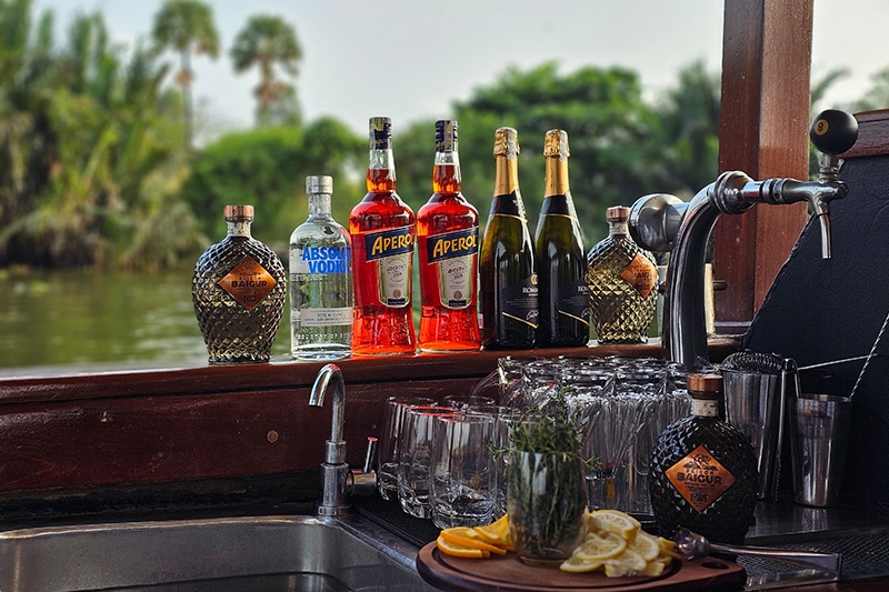Saigon Boat Company has a beautiful open boat to cruise the Saigon River. Our tours are limited to a maximum of 20 people. A sliding roof for rain or sun, an onboard bar and a toilet guarantee maximum comfort.
